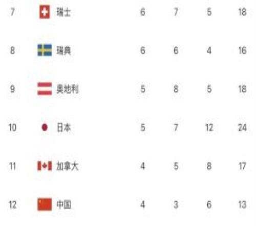 奖牌榜:中国队再添一铜,目前4金3银6铜仍居第12位