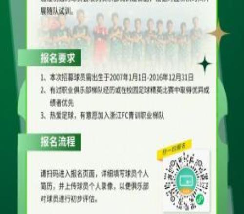 浙江FC宣布对20072016年龄段梯队进行补强选拔