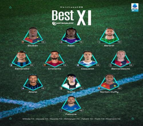 北京时间2月24日,意甲官方评选出了意甲第26轮的最佳11人阵容,莫伊塞-基恩、贝拉尔迪、克里斯坦特、贝尔纳代斯...
